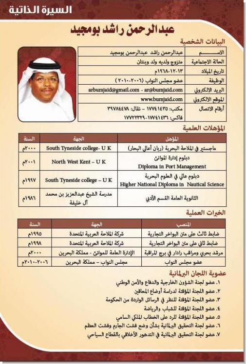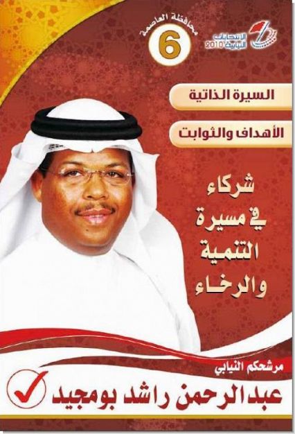 ضمن المطبوعات الإعلامية للحملة الانتخابية للمرشح عبدالرحمن بومجيد اللجنة الإعلامية تصدر السيرة الذاتية والأهداف والثوابت
