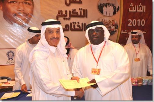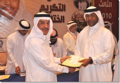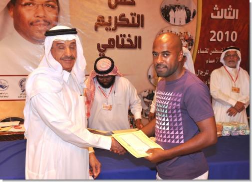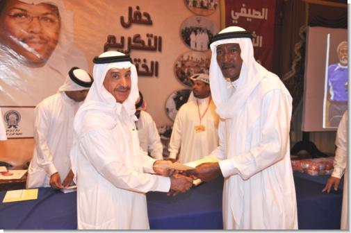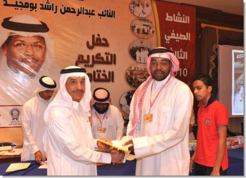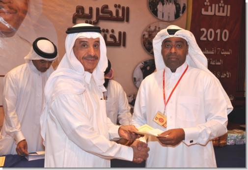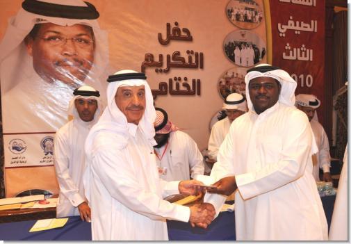ضمن حفل التكريم الختامي سعادة الوجيه حسن الصباح آل بن علي يشارك في تكريم أعضاء فرق العمل للجنة المنظمة للنشاط الصيفي 2010
