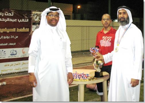 حقق فريق ألمانيا بطولة دورة قدامى اللاعبين الكروية بعد أن حقق فوزه الثالث على التوالي وبرصيد 9 نقاط إثر فوزه المستحق والكبير على فريق الأرجواي بنتيجة 6/4 في المباراة النهائية للدورة التي جرت يوم الأحد الماضي على مركز الإبداع بأم الحصم جرت مساء يوم أمس الثلاثاء برعاية وحضور سعادة النائب عبدالرحمن بومجيد ¡ ويأتي تنظيم هذه البطولة ضمن النشاط الصيفي الثالث 2010 لسادسة العاصمة والذي تنظمه اللجنة الأهلية بالدائرة السادسة بمحافظة العاصمة بالتعاون مع نادي أم الحصم الرياضي ودار أم الحصم لرعاية الوالدين وصندوق أم الحصم الخيري ومركز آل بن على لتحفيظ القران الكريم ¡ وذلك تحت رعاية ودعم سعادة النائب عبدالرحمن راشد بومجيد في الفترة 24 يونيو حتى 31 يوليو 2010 .وقد جرت المباراة النهائية على ملعب مركز الإبداع بمنطقة أم الحصم وسط حضور جماهيري كبير من شباب وأهالي أم الحصم ومناطق الدائرة السادسة بالعاصمة وحضرها كذلك رئيس وأعضاء اللجنة المنظمة للنشاط الصيفي. وجاءت أهداف المباراة على مدار الشوطين حيث أحرز أهداف فريق ألمانيا كل من بدر سالم 4 أهداف وهدف لكل من خالد اسماعيل وراشد السويدي ¡بينما أحرز أهداف فريق الأرجواي كل من هشام عواد هدفين وناصر سالم هدف ومحمد الفرحان هدف.وجاء فريق أسبانيا في المركز الثاني بعد حصوله على 6 نقاط بعد أن أكتسح فريق هولندا في المباراة الأخيرة التي جمعت الفريقين وبنتيجة 6/1 وجاءت أهداف المباراة على مدار الشوطين حيث أحرز أهداف فريق أسبانيا كل من عبدالناصر البوسميط (هاتريك) وهدفين للاعب عبدالله عبدالكريم وهدف للاعب حسن مراد ¡بينما أحرز هدف فريق هولندا اللاعب راشد مجلي. وقد شهد هذا اللقاء سجالا كبيرا وتنافسا شديدا وندية نظرا للقوة التي ميزت لقاء الفريقين ولتقارب المستوى بينهما وامتلاك كل فريق لعدد من اللاعبين الشباب أصحاب المهارات واللياقة الجيدة خاصة في مركزي الدفاع والهجوم وقد أظهرت هذه المباراة والبطولة العديد من المواهب الشابة والتي تمتلك الكثير من فنيات كرة القدم وينتظرها مستقبل باهر في الكرة مع نادي أم الحصم الرياضي في المستقبل ¡وقد أدار هذه المباراة الحكم المتألق أنور الضريبي.وفي نهاية المباراة تفضل راعي المباراة وراعي النشاط الصيفي الثالث 2010 لسادسة العاصمة سعادة النائب عبدالرحمن بومجيد بتتويج فريق ألمانيا الفائز بالبطولة بكأس البطولة والميداليات الذهبية وفريق أسبانيا صاحب المركز الثاني بالميداليات الفضية¡صرح بذلك خليف السعدون منسق الأنشطة الرياضية في النشاط الصيفي الثالث 2010.