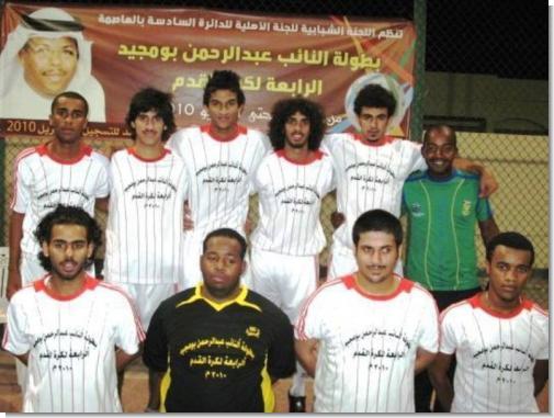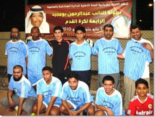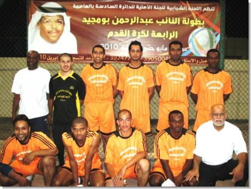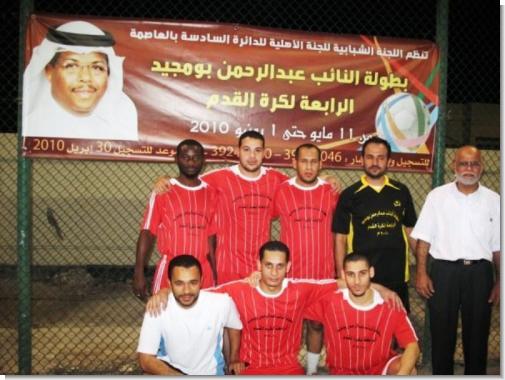 فريق تونـــــــسفريق الكــــــــاميرونفريق ســــــاحل العـــــــاجفريق مصــــــــرانطلقت مساء يوم الثلاثاء الماضي على ملاعب مركز الإبداع بأم الحصم بطولة النائب عبدالرحمن بومجيد الكروية الرابعة بحضور النائب عبدالرحمن بومجيد وعدد من أعضاء اللجنة الأهلية للدائرة السادسة بمحافظة العاصمة وأعضاء اللجنة المنظمة للبطولة وعدد من أهالي وشباب منطقة أم الحصم والدائرة السادسة بمحافظة العاصمة ¡ حيث التقى في المباراة الأولى في اليوم الأول للبطولة وضمن المجموعة الأولى فريقي مصر وساحل العاج وانتهى اللقاء بفوز فريق مصر بنتيجة 4 / صفر وسجل الأهداف كل من اللاعب عبدالله اسماعيل هدفين وكل من اللاعب عصام هدف واللاعب جمال هدف وأدار المنارة الحكم أنور الضريبي . وفي المباراة الثانية التي جرت بين فريقي تونس والكاميرون وشهدت تنافسا كبيرا فقد انتهت المباراة بالتعادل السلبي بين الفريقين وأدارها الحكم المخضرم سلطان مجلي.الجدير بالذكر بأن هذه البطولة التي تقام وبنجاح كبير وللعام الرابع على التوالي وتنظمها اللجنة الشبابية التابعة للجنة الأهلية للدائرة السادسة بمحافظة العاصمة تحت رعاية ودعم النائب عبدالرحمن بومجيد تأتي انطلاقا من حرص النائب بومجيــد على دعم كافة الأنشطـــة الشبابية والرياضيــــة في منطقـــة أم الحصم ومناطق الدائرة السادسة بمحافظة العاصمة والسعي لتوفير الفعاليات التي من شأنها صقل مهارات الشباب وتنمية المواهب الكروية لديهم والسعي إلى خلق أجواء تنافسية بين الرياضيين في المنطقة وسف تستمر منافساتها حتى الأسبوع الأول من شهر يونيو القادم على ملعب مركز الإبداع بأم الحصم. هذا ويشارك في هذه البطولة ثمانية فرق يمثلون فرق مصر والجزائر والمغرب وتونس ونيجيريا وجنوب أفريقيا والكاميرون وغانا ¡ وحرصا من اللجنة المنظمة للبطولة على إبرازها بالمظهر اللائق وبالصورة المطلوبة ولكي تتحقق أهداف الدورة فقد تم ترتيب ومتابعة كافة الأمور التنظيمية وتوفير الاحتياجات اللازمة لضمان إنجاح هذه البطولة. ومن جهة أخرى ستقوم اللجنة المنظمة بتنظيم لقاء الذكريات للاعبين القدامى في أم الحصم ومناطق الدائرة السادسة في محافظة العاصمة ضمن فعاليات البطولة ¡حيث سيتم الإعلان عن هذا اللقاء في القريب العاجل ¡ هذا وقد خصصت اللجنة المنظمة للبطولة جائزة لهداف البطولة بالإضافة لكأس البطولة وميداليات المركزين الأول والثاني ¡ صرح بذلك خليفة خميس السعدون رئيس اللجنة المنظمة للبطولة.