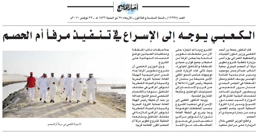 أثناء زيارته لموقع المرفأ بمرافقة النائب بومجيد وزير البلديات يوجه للاسراع بتنفيذ مشروع مرفأ أم الحصم