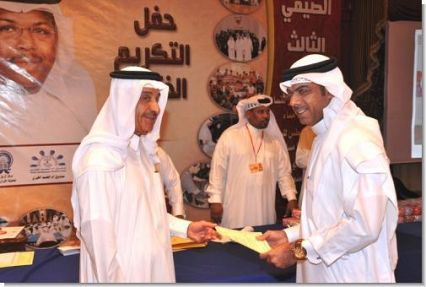 ضمن حفل التكريم الختامي سعادة الوجيه حسن الصباح آل بن علي يشارك في تكريم أعضاء فرق العمل للجنة المنظمة للنشاط الصيفي 2010