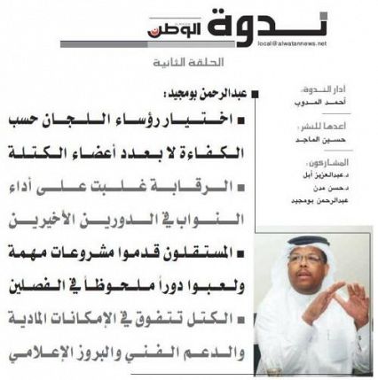 النائب بومجيد خلال مشاركته في ندوة جريدة الوطن - الجزء الثاني : الرقابة غلبت على أداء النواب في الدورين الأخيرين والمستقلون قدموا مشروعات مهمة ولعبوا دورا ملحوظا في الفصلين