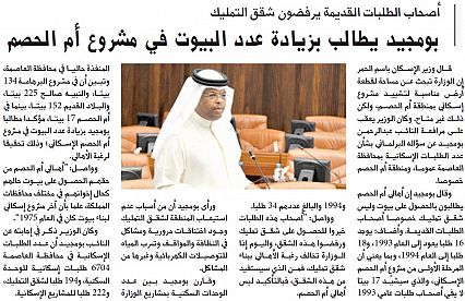 بومجيد يطالب بزيادة عدد البيوت بمشروع أم الحصم