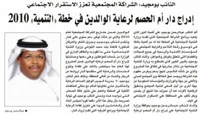 النائب بومجيد يثمن إدراج دار أم الحصم لرعاية الوالدين في مشروع الشراكة المجتمعية ويؤكد على أنها تعزز الاستقرار الاجتماعي