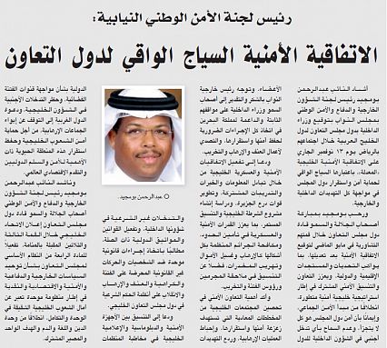 النائب بومجيد يؤكد بأن الاتفاقية الأمنية هي السياج الواقي لدول مجلس التعاون الخليجي