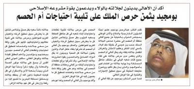 النائب بومجيد يثمن حرص الملك على تلبية احتيجات أهالي أم الحصم ويؤكد بأن الأهالي يدينون لجلالته بالولاء ويدعمون بقوة مشروعه الإصلاحي