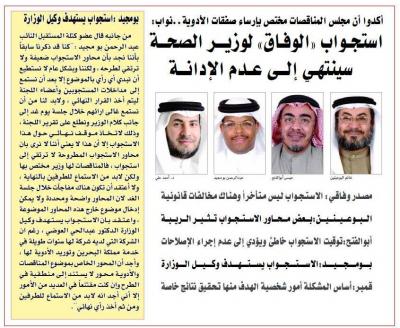 أكدوا على أن مجلس المناقصات مختص بإرساء صفقات الأدوية نواب يؤكدون على أن استجواب الوفاق لوزير الصحة سينتهي إلى عدم الإدانة