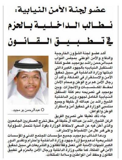 التائب بومجيد : نطالب وزارة الداخلية بالحزم في تطبيق القانون