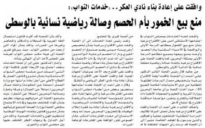 خدمات النواب : منع بيع الخمور بأم الحصم والموافقة على اقتراح برغبة بشأن تخصيص أرض وبناء مبنى يضم صندوق أم الحصم للعمل الخيري ودرا أم الحصم لرعاية الوالدين ومناقشة بناء صالة رياضبة بنادي أم الحصم