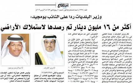 وزير البلديات رداً على سؤال النائب بومجيد يؤكد رصد اكثر من 16 مليون دينار لاستملاك الأراضي