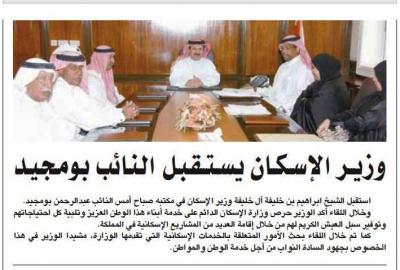 وزير الإسكان بستقبل النائب بومجيد ويبحث معه عدد من المسائل الإسكانية في المنطقة
