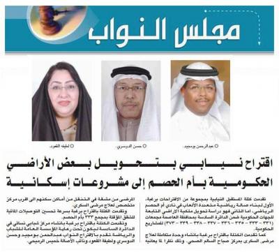 اقتراح نيابي بتحويل بعض الأراضي الحكومية بأم الحصم إلى مشاريع اسكانية