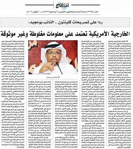 أكد النائب عبدالرحمن بومجيد عضو لجنة الشؤون الخارجية والدفاع والأمن الوطني أن مملكة البحرين تشكل نموذجًا فعالاً في الإصلاح السياسي الحقيقي والمتواصل على أسس من الحرية والعدالة والمساواة والوحدة الوطنية¡ وتوافر آليات الحوار البناء وترسيخ المشاركة الشعبية في الشؤون العامة والحياة السياسية من خلال السلطة التشريعية بمجلسيها الشورى والنواب¡ وحيوية المجتمع المدني والصحافة الحرة والمستقلة.وذكر أن البحرين دشنت فصلاً جديدًا في تجربتها الديمقراطية المتطورة القائمة على الشراكة والشفافية بعد تدشين حوار التوافق الوطني في يوليو الماضي بمشاركة كل أطياف المجتمع البحريني وتشكيل اللجنة البحرينية المستقلة لتقصي الحقائق برئاسة الخبير العالمي في الأمم المتحدة وأستاذ القانون الدولي في جامعة ديبول بشيكاغو¡ موضحًا أن الإدارة الأمريكية على إطلاع تام بكل التطورات الإصلاحية والانفتاحية منذ انطلاق المشروع الإصلاحي لصاحب الجلالة الملك المفدى.ورحب بحرص السلطتين التنفيذية والتشريعية في الولايات المتحدة الأمريكية على أمن واستقرار البحرين وتطورها¡ وتوثيق علاقات التعاون والشراكة بين البلدين الصديقين في مختلف الميادين¡ واهتمامها بدفع عملية الإصلاحات الجادة في المملكة¡ وتثمينها دعوة جلالة الملك بتشكيل لجنة مستقلة لتقصي الحقائق¡ مشيرًا في ذلك إلى ما تضمنته كلمة وزيرة الخارجية الأمريكية هيلاري كلينتون أمام المعهد الوطني الديمقراطي بواشنطن¡ ورسالة لجنة الشؤون الخارجية في الكونجرس الأمريكي.ودعا إلى مزيد من التواصل مع الجانب الأمريكي لتوضيح حقائق الأوضاع في مملكة البحرين¡ وما تشهده من تطورات إصلاحية رغم مساعي المعارضة المتطرفة للتأزيم السياسي أو تعطيل عجلة الديمقراطية¡ مثمنًا إدراك الكونجرس لحرص القيادة البحرينية¡ بشكل مثمر وملائم¡ على توفير الأمن والاستقرار للمواطنين¡ ودعمه جهود المجلس البحريني الأمريكي لبناء تحالف حيوي وقوي بين البلدين والشعبين الصديقين¡ قائلاً: «إن هذه التوجهات الإيجابية محل ترحيب¡ ونأمل في زيارة ودية من أعضاء الكونجرس الأمريكي لمجلس النواب البحريني لتعزيز أوجه الصداقة والتعاون البرلماني».وأفاد بومجيد أن هناك بعض الأمور المغلوطة في الكلمة الأخيرة لوزيرة الخارجية الأمريكية نتيجة اعتمادها على مصادر أحادية الجانب أو غير موثوقة¡ مؤكدا أن البحرين تكفل حرية الاحتجاج والعمل السياسي العلني والسلمي بوسائل مشروعة¡ وما تعرضت له خلال شهري فبراير ومارس 2011م كان مخططا إرهابيا طائفيا لقلب نظام الحكم وإقامة جمهورية إسلامية تابعة لولاية الفقيه بدعم وتحريض من إيران وحزب الله اللبناني¡ الذي تعتبره الدوائر السياسية والمخابراتية الأمريكية منظمة إرهابية¡ وتدرك حقيقة هذه التدخلات في الشأن البحريني.وعلى هذا الأساس ذكر بومجيد أنه لا وجود إطلاقًا لأي سجناء أو معتقلين سياسيين في البحرين¡ موضحًا أن المحكومين أمام القضاء البحريني ليس بسبب ممارسة حقهم الدستوري في التعبير عن الرأي¡ وإنما لاتهامهم بالتورط في قضايا جنائية موثقة بالأدلة والبراهين سواء بضلوعهم في التحريض على قلب النظام السياسي عن طريق العنف والإرهاب أو ارتكاب أعمال إجرامية يعاقب عليها القانون والمواثيق الدولية¡ وترتب عليه المساس بالأمن القومي وأمن الآخرين وحرياتهم.وأكد أن البحرين بجميع سلطاتها التنفيذية والتشريعية والقضائية ملتزمة بتدعيم الإصلاحات واستدامتها من خلال التعاون في تنفيذ مرئيات حوار التوافق الوطني البالغة (291) مرئية في جميع المحاور السياسية والحقوقية والاجتماعية والاقتصادية¡ ومن بينها زيادة صلاحيات البرلمان من دون مساس بنظام المجلسين¡ وحظر استغلال المؤسسات الدينية أو المدنية في ممارسات طائفية¡ وتعزيز حقوق الإنسان¡ واستكمال وتحديث منظومة القوانين والتشريعات¡ عبر إدماجها في برنامج عمل الحكومة أو إدخال التعديلات التشريعية والدستورية اللازمة.وأضاف أن المشروع الإصلاح
